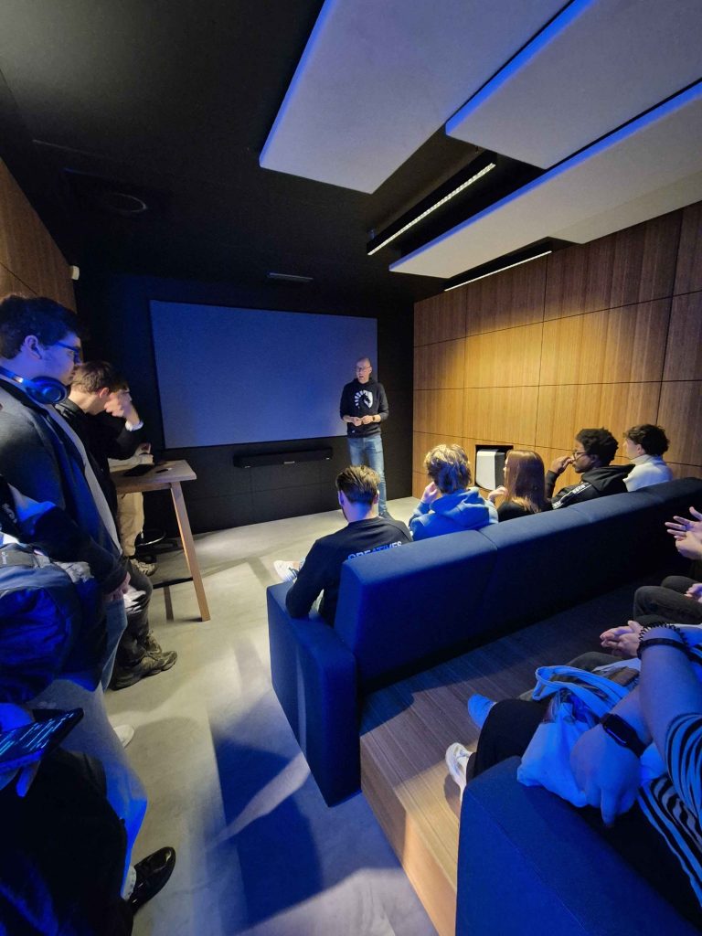 De studenten van het GameLab keken hun ogen uit. De wereld van esports is er ook één van games, die zij vooral kennen van streamers en creators die hier ook rondlopen. Even een selfie maken met League of Legends-legende Broxah was geen probleem. Het was een unieke kans om deze “Training Facility” van binnen te zien.